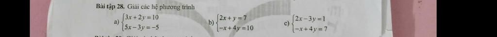 b) `{(2x + y = 7),(-x + 4y = 10):}`