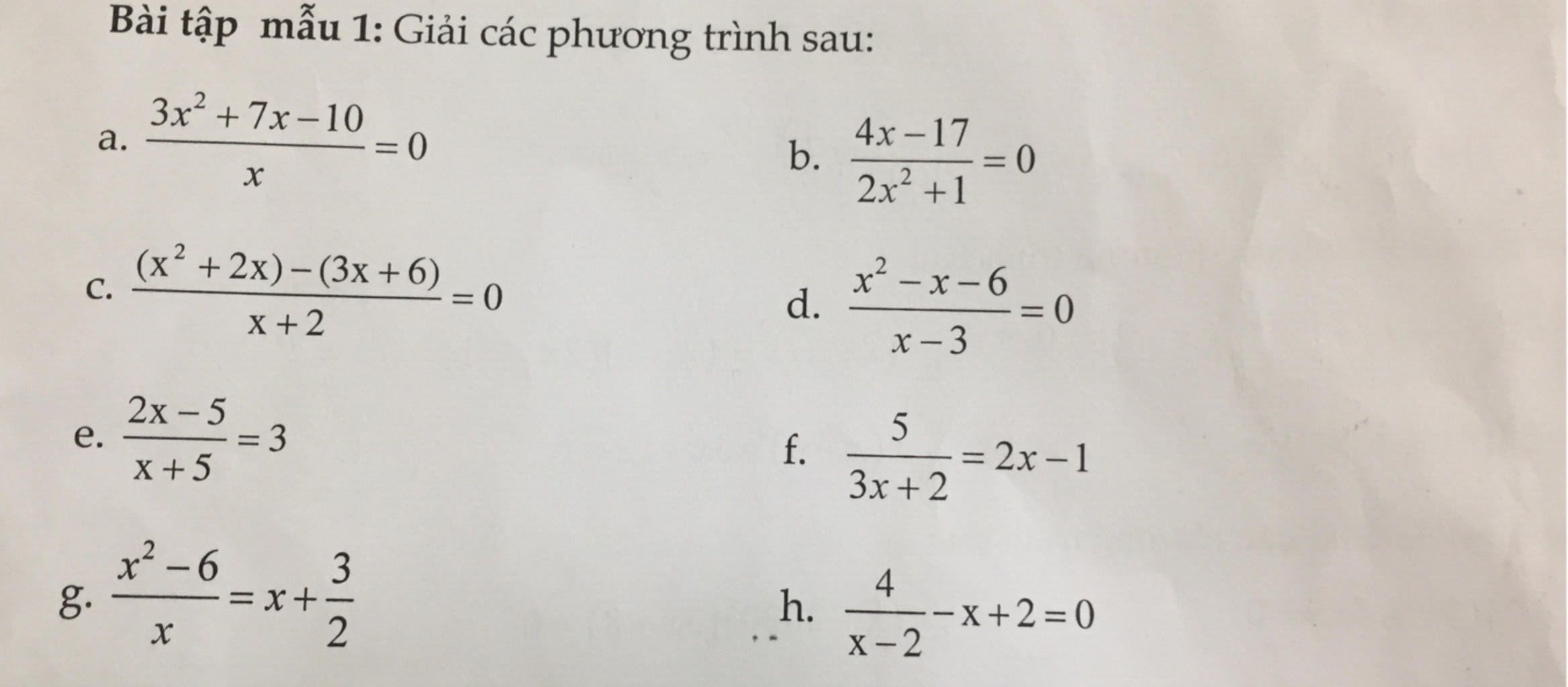 $\dfrac{3x^2+7x-10}x=0$