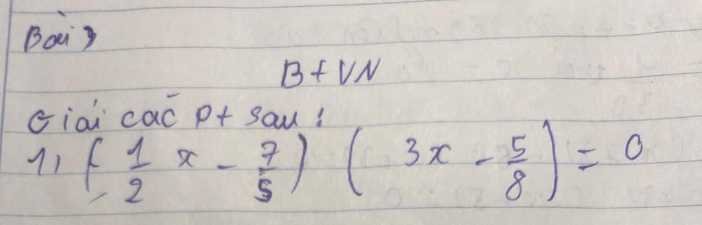 `1/2x-7/5=0` hoặc `3x-5/8=0`