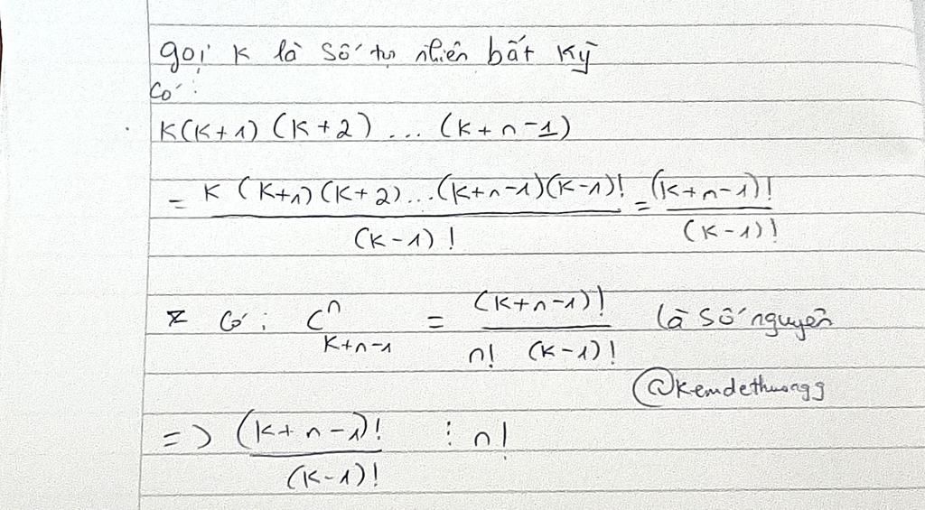 chứng minh rằng tích n số tự nhiên liên tiếp chia hết cho n!