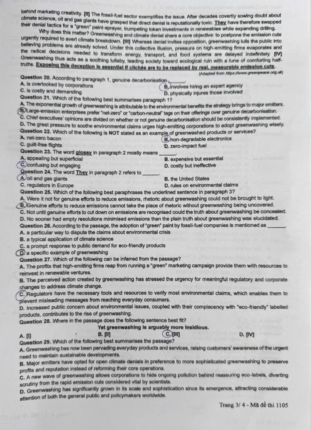 D/C: Đoan 3 câu cuối (Exposing this deception is essential if clichés are to be replaced by real, measurable emission cuts.)