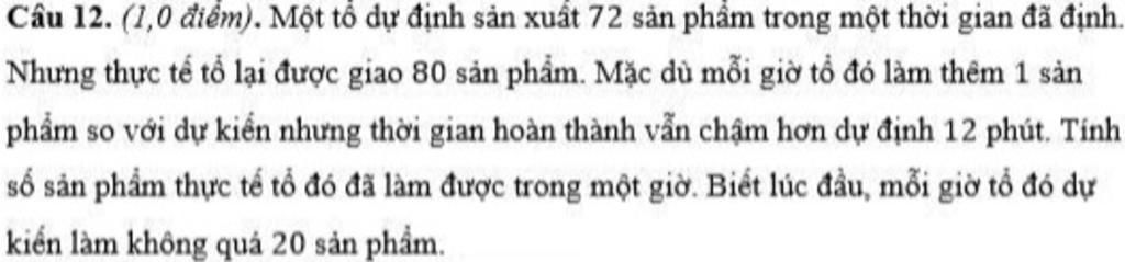 Gọi $x$ là số sản phẩm dự kiến làm mỗi giờ, $(x\le 20, x\in N^*)$