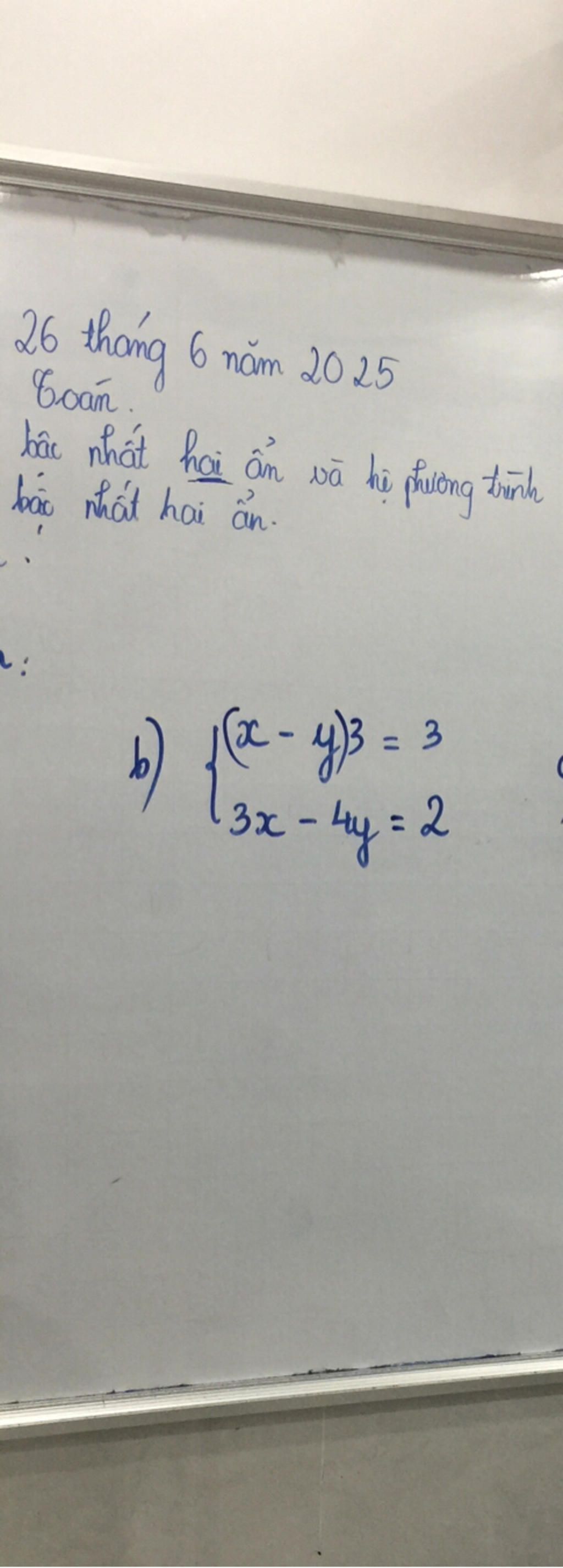 `{((x - y).3 = 3),(3x - 4y = 2):}`