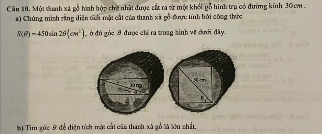 Câu 10. Một thanh xà gồ hình hộp chữ nhật được cắt ra từ một khối gỗ hình trụ có đường kính 30cm .