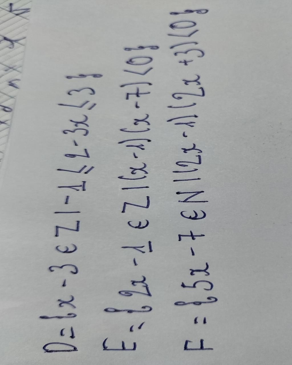 `D = {x - 3 \in ZZ | -1 <= 2 - 3x <= 3 }`