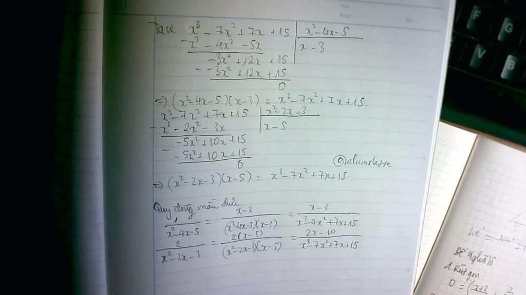 Vậy có thể chọn đa thức `x^3−7x^2+7x+15` làm mẫu thức chung của `2` phân thức trên