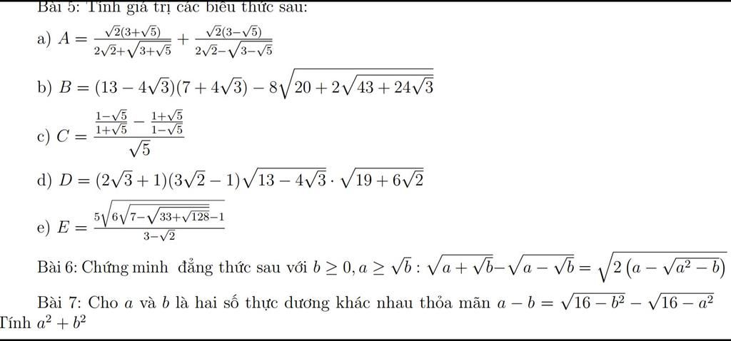 Bài 5: Tỉnh giá trị các biểu thức sau: