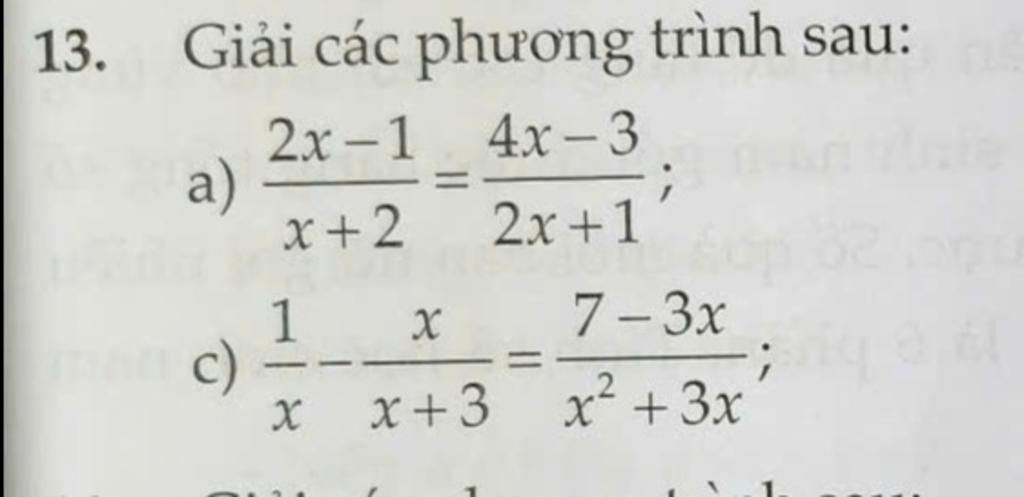 `a)(2x-1)/(x+2)=(4x-3)/(2x+1)` (ĐK: `x\ne-2;x\ne-1/2)`