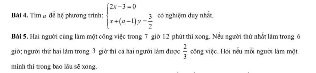 Vậy `a = {x \in RR|a \ne 1}` thì hệ phương trình có nghiệm duy nhất