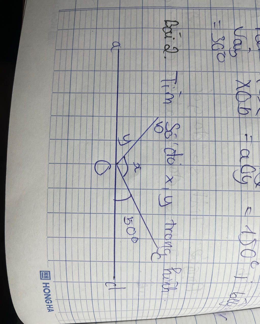 Vậy góc $\widehat{x}$ `= 90` độ , $\widehat{y}$ `= 40` độ