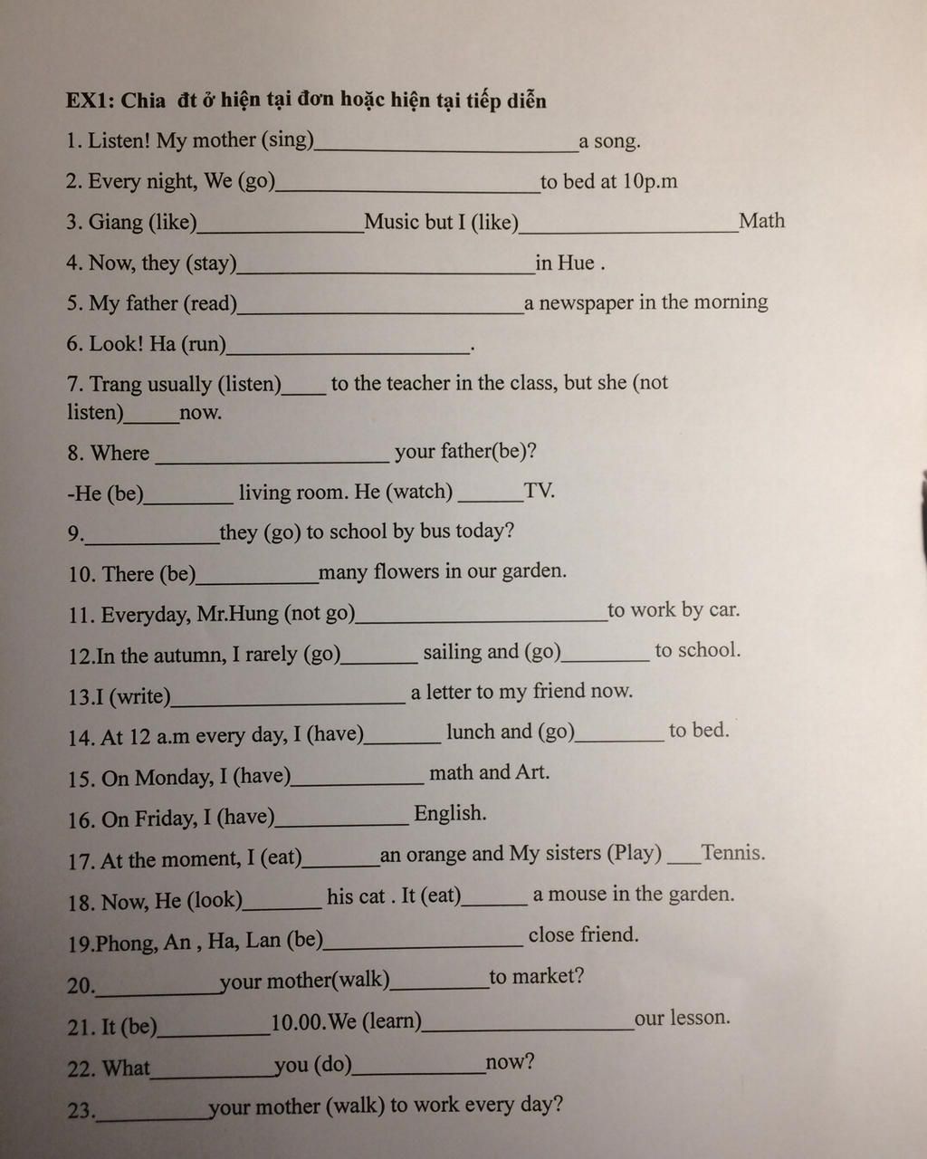 - I / You / We / They / Danh từ số nhiều + do/ V nguyên thể.