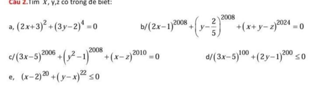 `b)(2x-1)^2008+(y-2/5)^2008+(x+y-z)^2024=0`