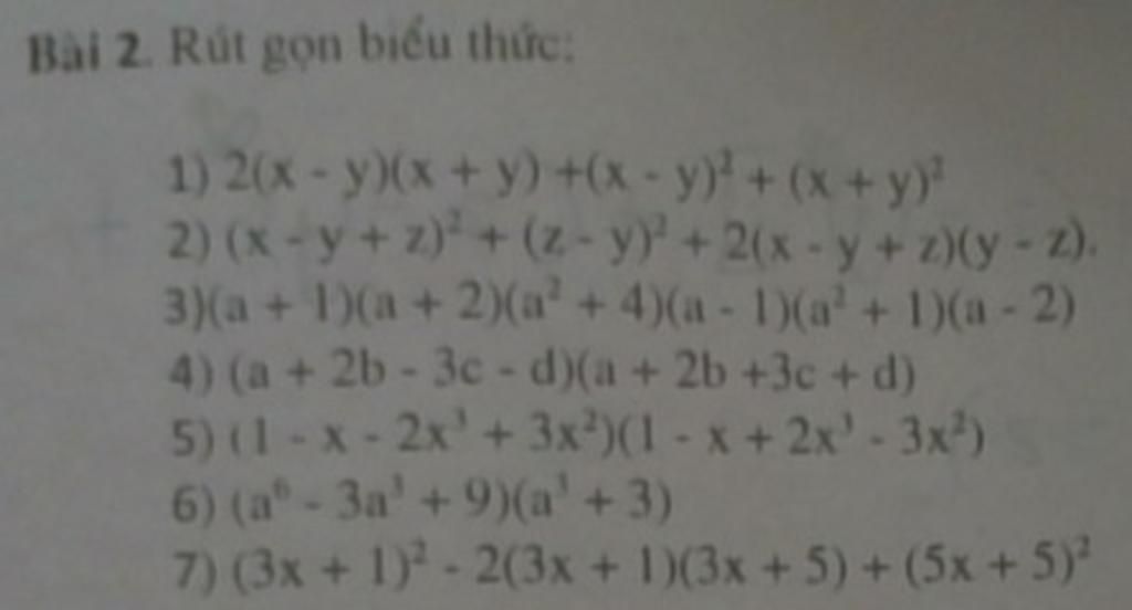 2) `(x-y+z)^2+(z-y)^2+2(x-y+z)(y-z)`