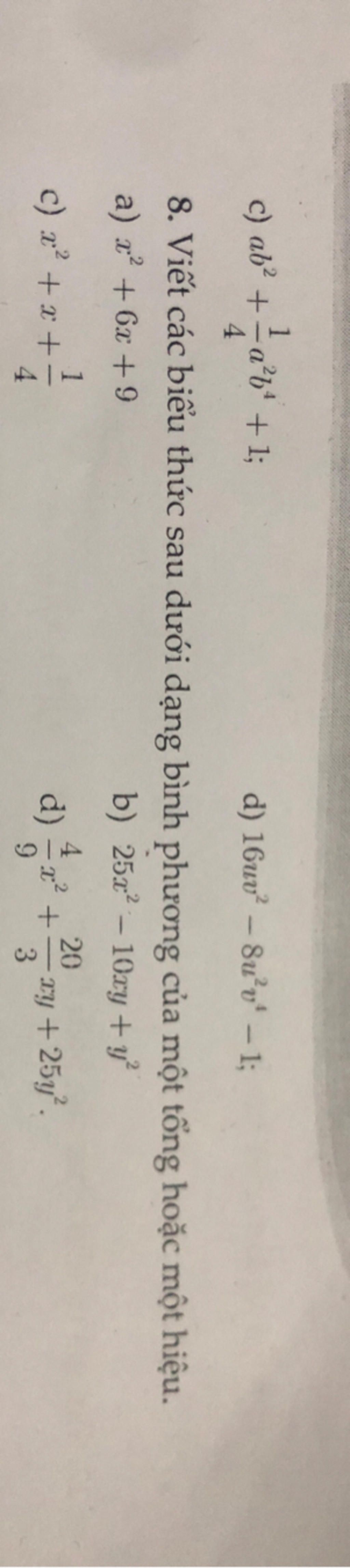 C,D câu hỏi là viết các biểu thức dưới dạng bình phương của 1 tổng hoặc hiệu