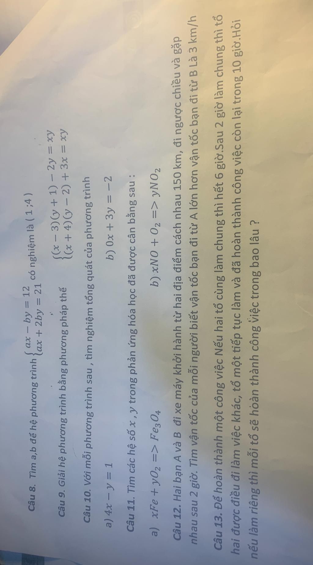 Từ pt `(1)` ta có `a=12+4b` thay vào pt `(2)` ta có: