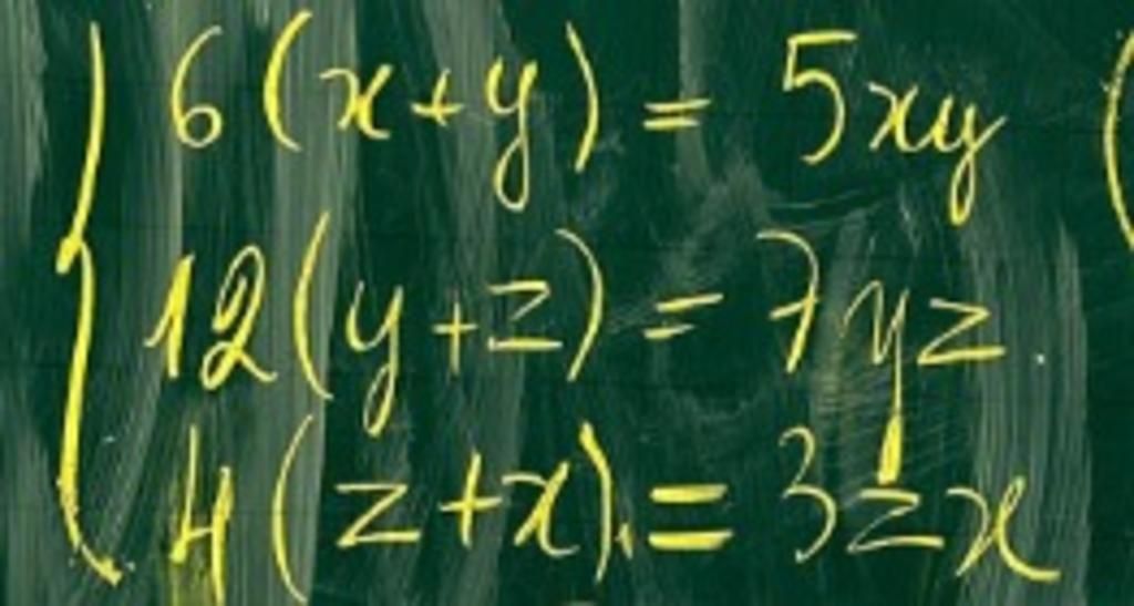 `{(6·(1/y+1/x)=5),(12·(1/z+1/y)=7),(4·(1/x+1/z)=3):}`