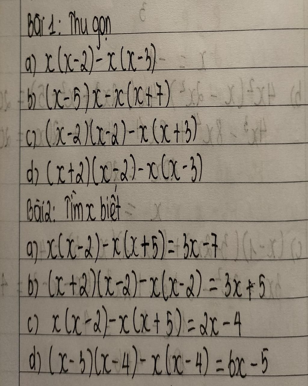 `1)x(x-2)-x(x-3)=x^2-2x-x^2+3x=x`
