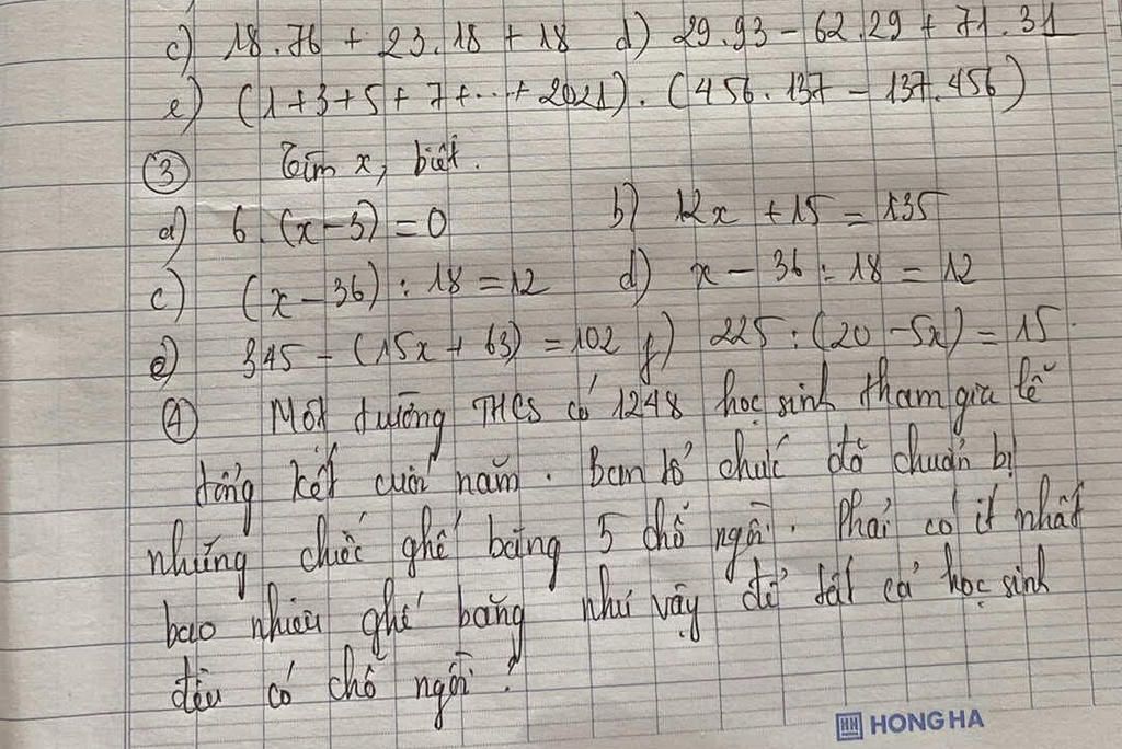 e) (1 + 3 + 5 + 7 + ...... + 2021) × (456 × 157 - 137 × 456)