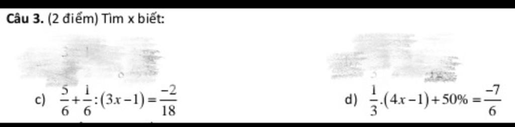 `c) 5/6 + 1/6 : ( 3x - 1 ) = -2/18`