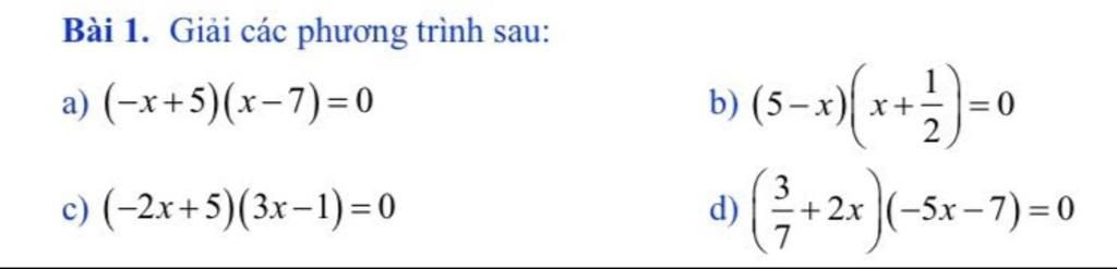 `=> -x+5 = 0` hoặc `x - 7 = 0`