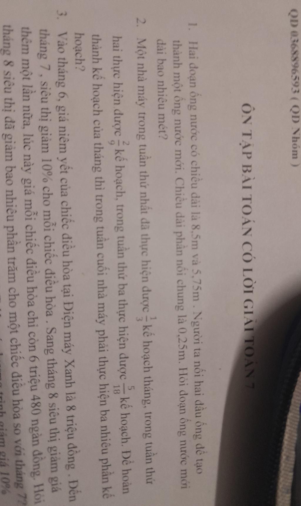 1. Hai đoạn ống nước có chiều dài là 8,5m và 5,75m . Người ta nối hai đầu ống để tạo