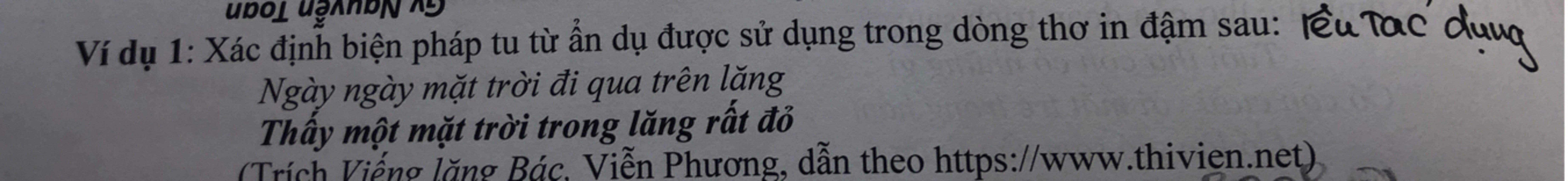- Biện pháp tu từ được sử dụng trong câu là: ẩn dụ "mặt trời"