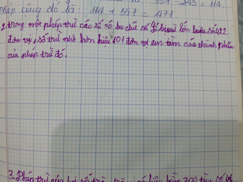 Vì số bị trừ lớn hơn hiệu số là 422 đơn vị nên số trừ chính bằng 422.