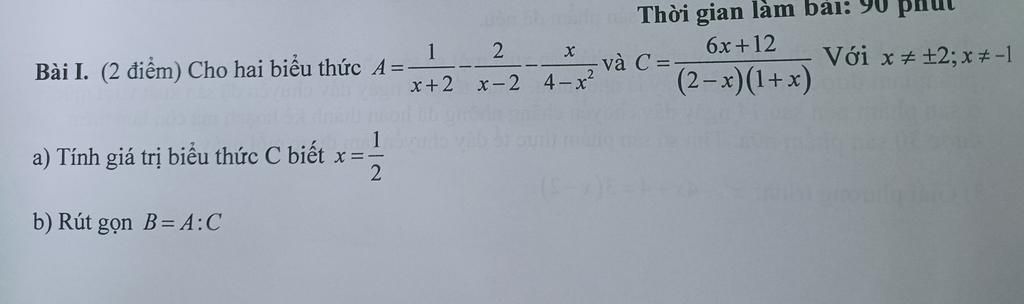 `a,` Thay `x = 1/2` (TMĐK) vào `C` ta được: