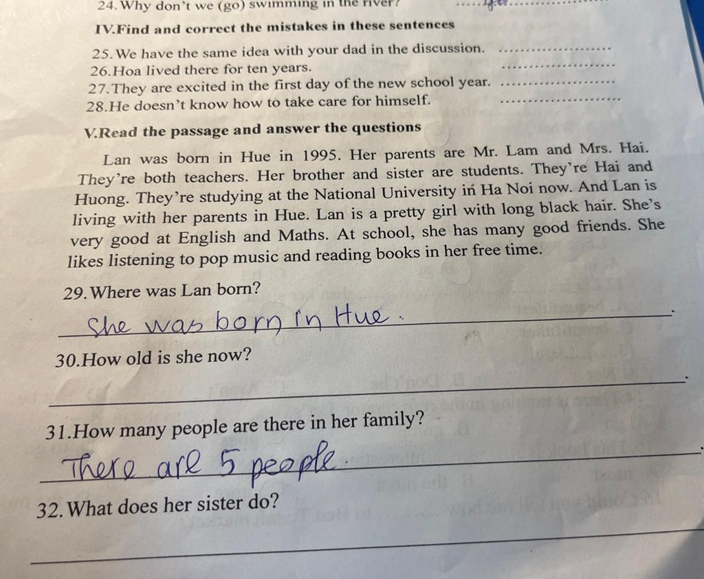 → Câu 1 nói Lan sinh 1995 nên hiện nay Lan 30 tuổi