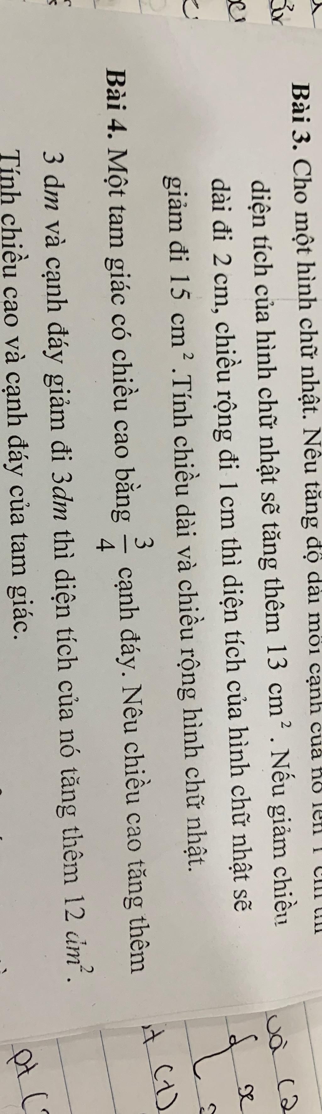 Cạnh đáy mới là `:` `3/4x -3` `(dm)`
