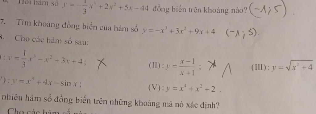nhiêu hàm số đồng biến trên những khoảng mà nó xác định?
