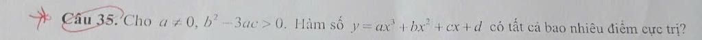 Vậy hàm số `y=ax^3+bx^2+cx+d\ (a ne 0; b^2-3ac>0)` có tất cả hai điểm cực trị.