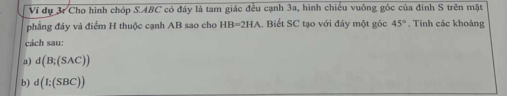 Ví dụ 3: Cho hình chóp S.ABC có đáy là tam giác đều cạnh 3a, hình chiếu vuông góc của đỉnh S trên mặt