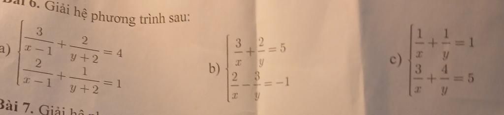b,$\left \{ {{\frac{3}x+\frac{2}y=5} \atop {\frac{2}x-\frac{3}y=-1}} \right.$ (x;y $\neq$ 0)
