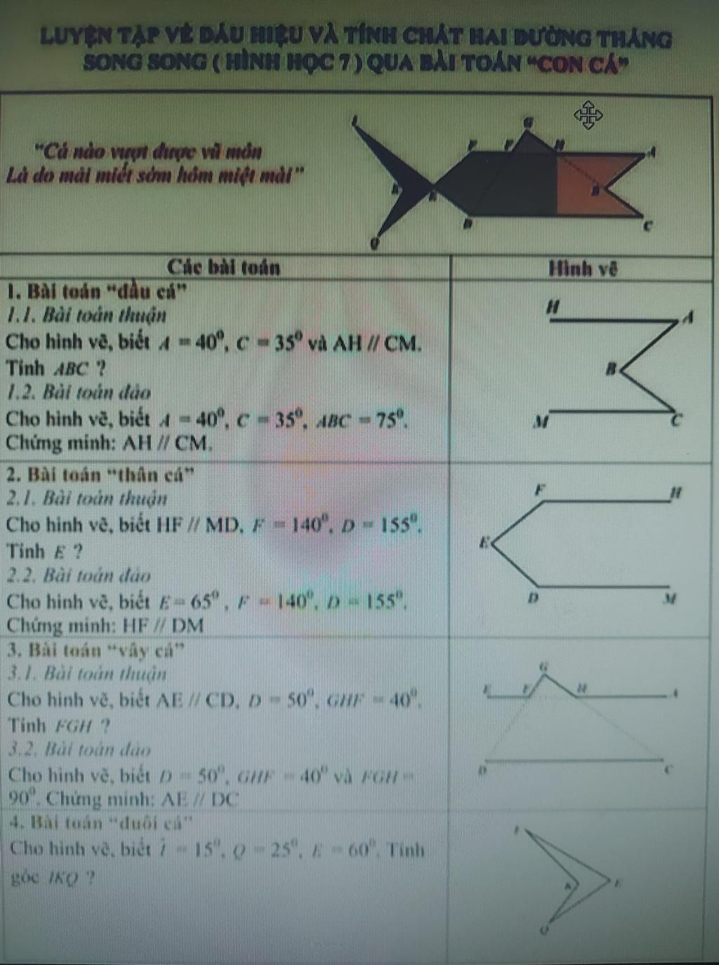 SONG SONG (HÌNH HỌC7) QUA BÀI TOÁN "CON CẤP