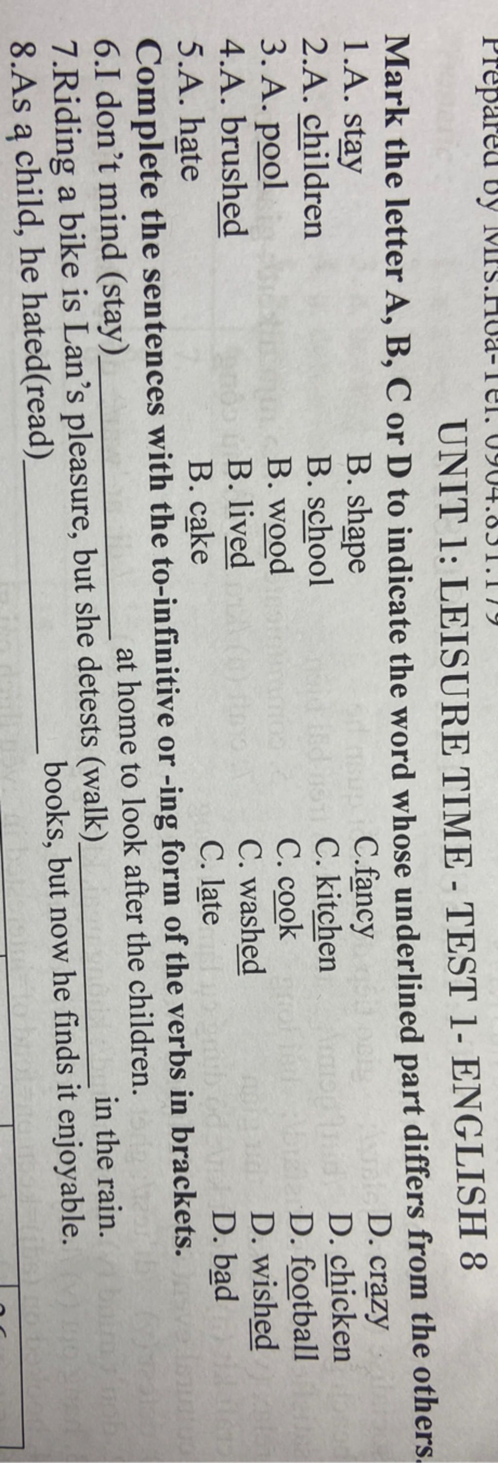 `1`. C /æ/, còn lại /eɪ/