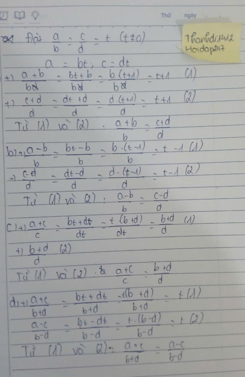 $\frac{a+b}{b}$ `=` $\frac{c+d}{d}$ $\text{(đpcm)}$