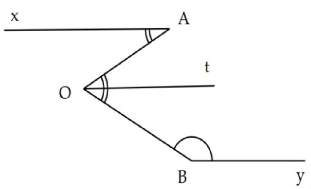 Ta có: `\hat{AOt}` và `\hat{BOt}` chung `Ot`