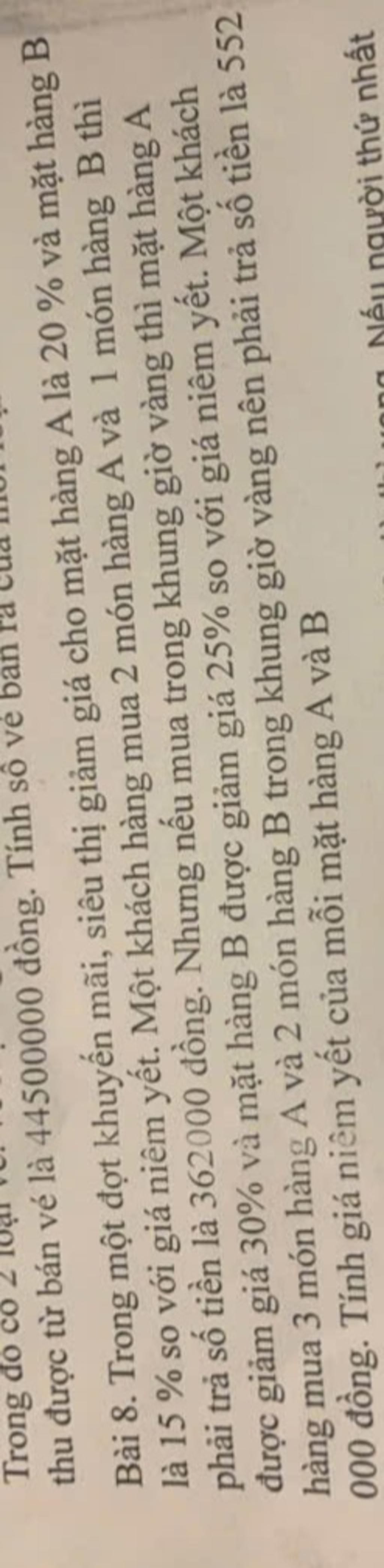 Vậy giá niêm yết của mặt hàng `A` là `120000` đồng và giá niêm yết của mặt hàng `B` là `200000` đồng.