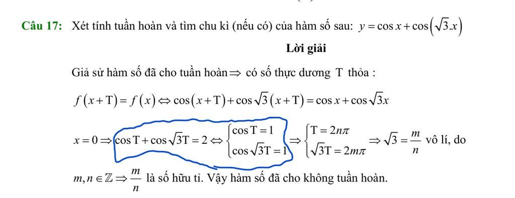 Câu 17: Xét tính tuần hoàn và tìm chu kì (nếu có) của hàm số sau: y =cosx+cos
