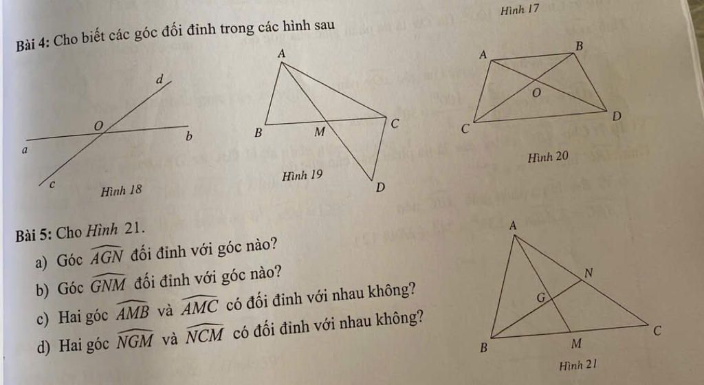 b.Trong hình góc $\widehat{GNM}$ không có góc đối đỉnh