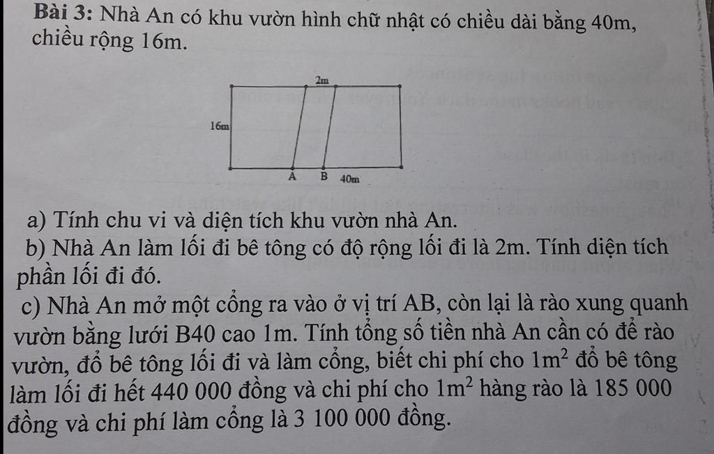`a,` Chu vi khu vườn nhà An: