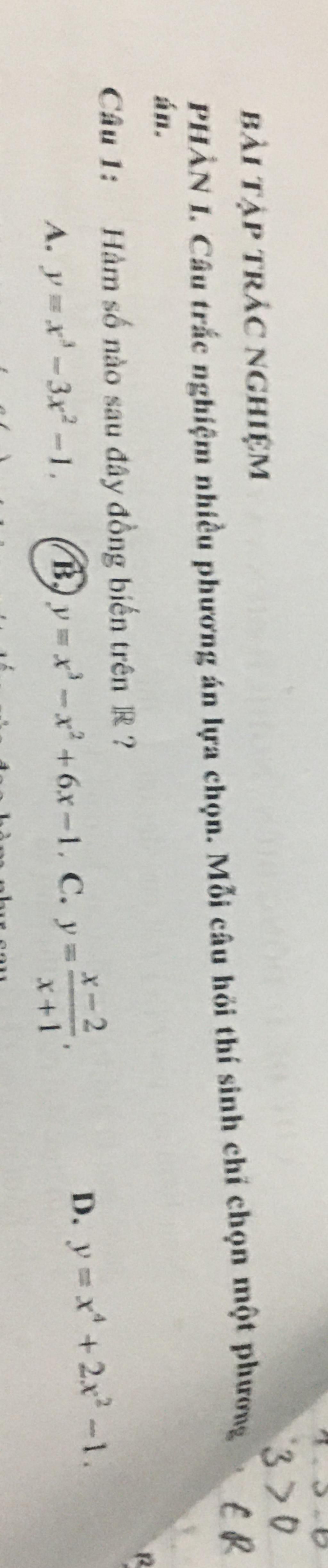 Vì $y' > 0$ với mọi $x \in \mathbb{R}$, hàm số $y = x^3 - x^2 + 6x - 1$ đồng biến trên $\mathbb{R}$.