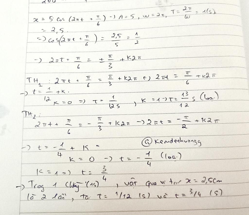 Do đó trong 1s đầu tiên, vật qua vị trí \(x = 2,5cm\) 2 lần.