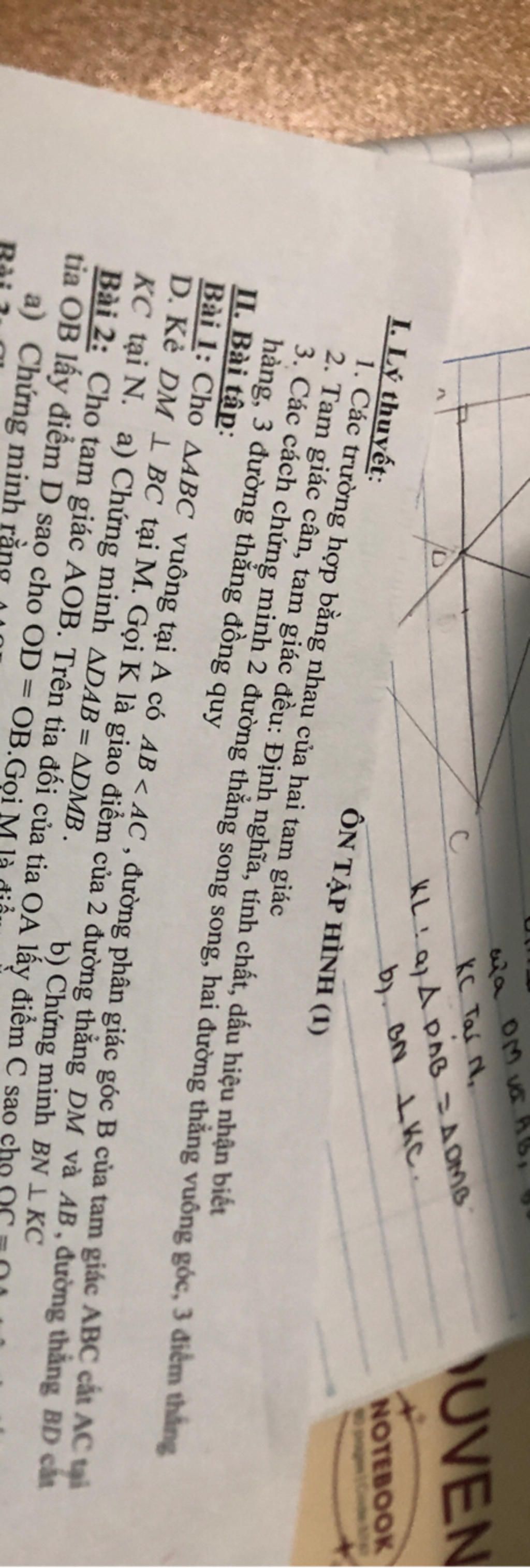 Trong `Δ BKC` có hai đường cao `CA, KM` giao nhau tại `D`