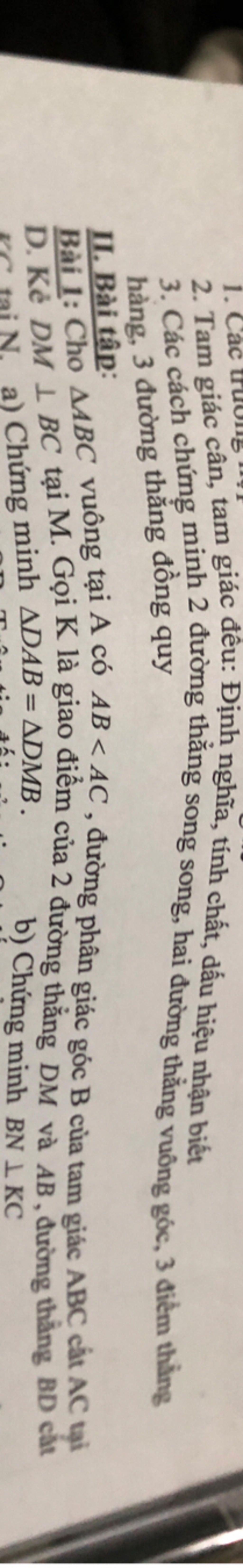 Bài 1: Cho AABC vuông tại A có AB < AC, đường phân giác góc B của tam giác AB ...