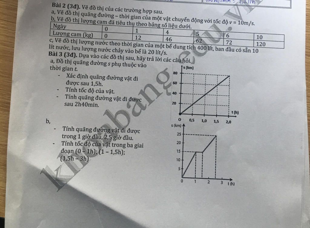 Trong 2,5 giờ, quãng đường di được là 20 km (dựa vào đồ thị).