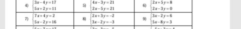 `9.{(3x-2y=6),(5x-8y=3):}`