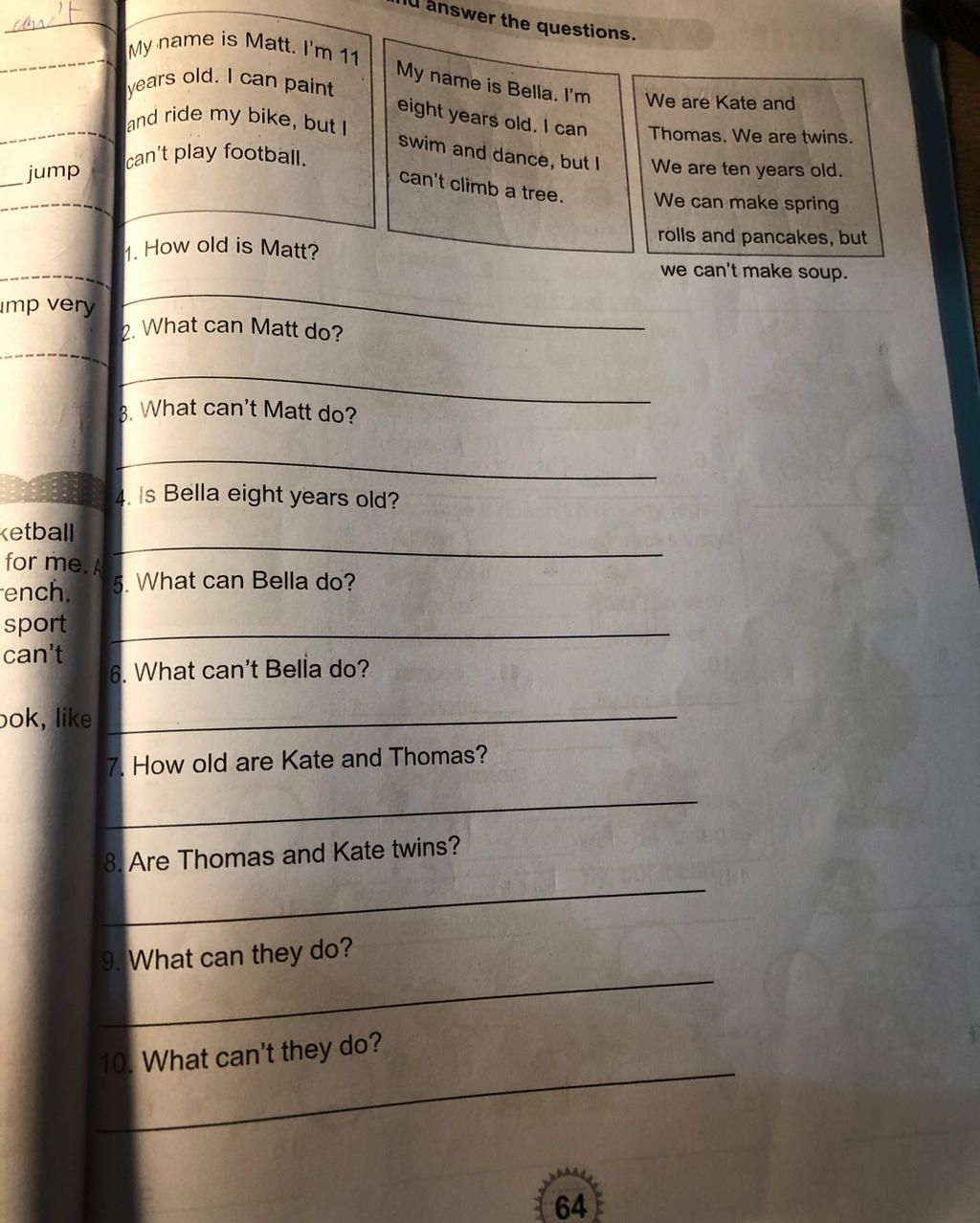 `color{pink}{3.}` What can't Matt do ? ( Matt không thể làm gì ? )