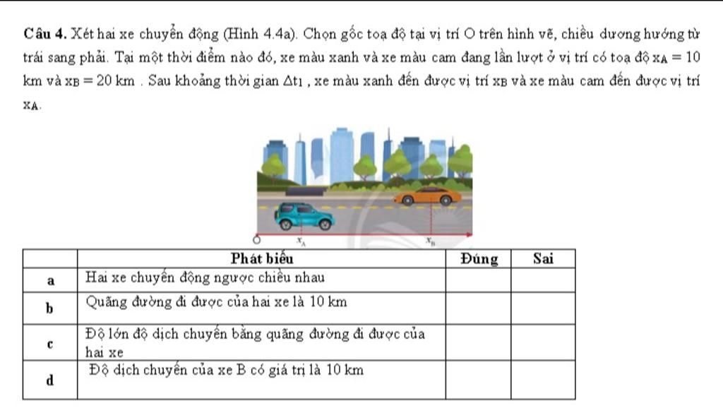 a, Xét hình 4.4a, ta thấy 2 xe chuyển động ngược chiều `=>` Đúng.